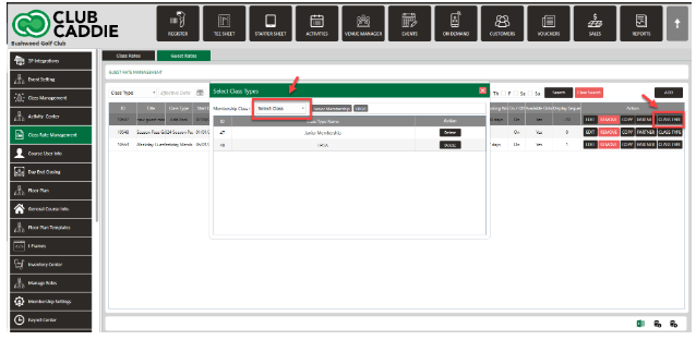 Step 6: To add the Guest Rate to a class or multiple classes, first click Class Type. Then in the pop-up window, select which classes you would like the rate to be applied to.