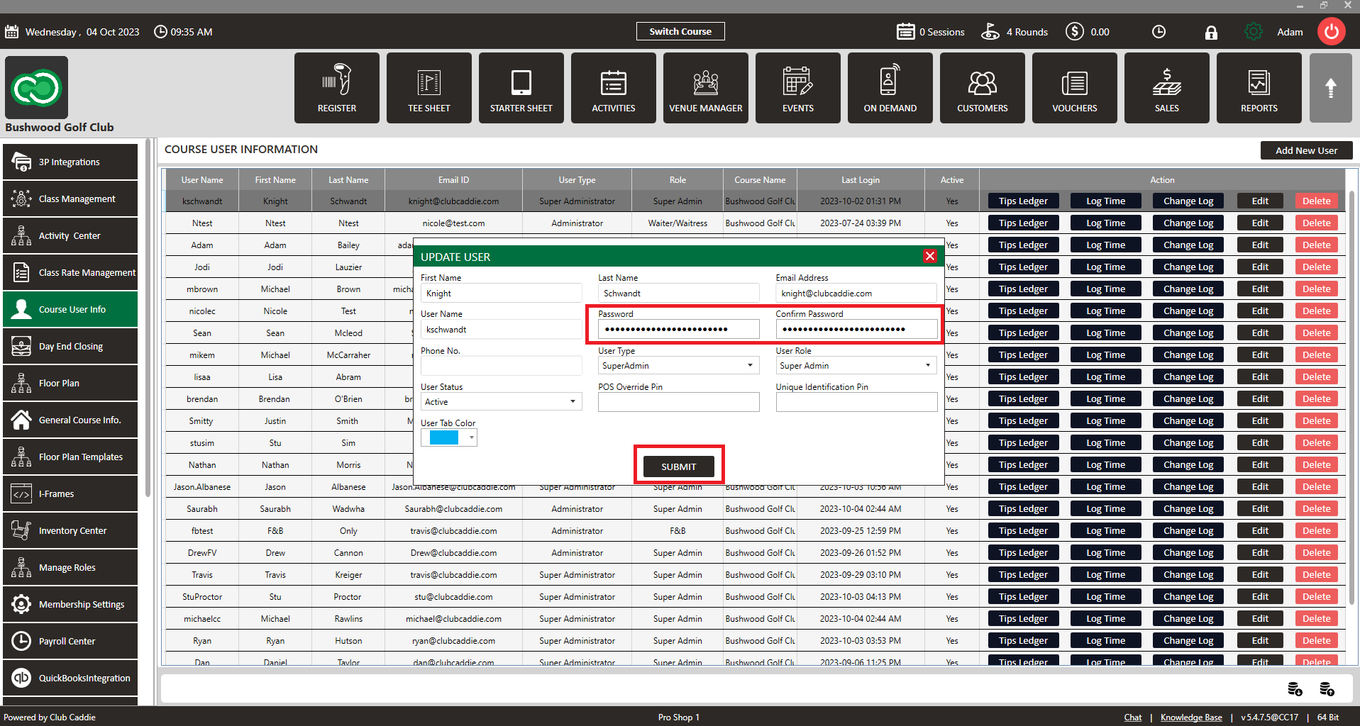 Step 4: To update the password, the previous password will first need to be deleted. Enter the new password in the Password and Confirm Password fields, then click on the Submit button.