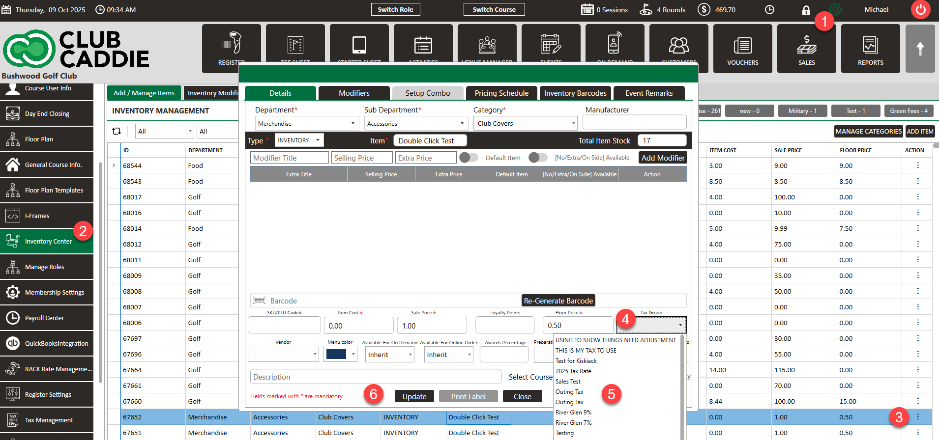 Step 4: Adding the new tax rate to an inventory item in the Inventory Center: