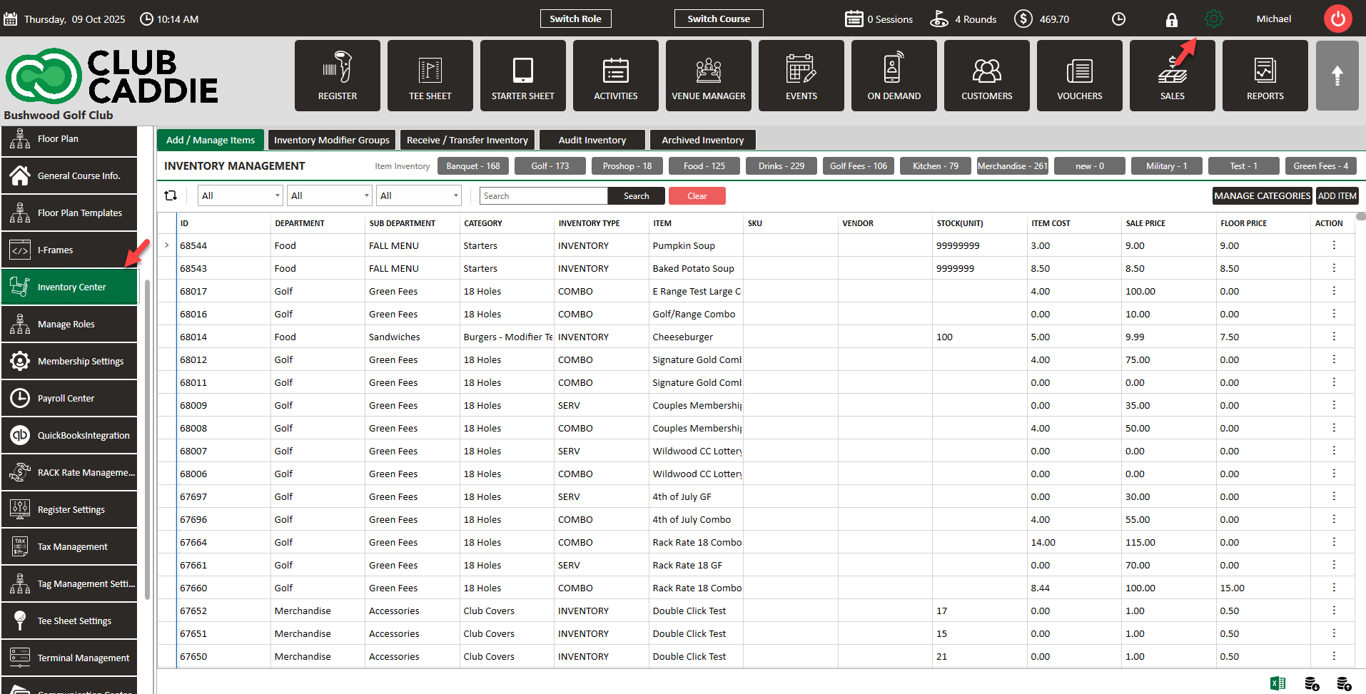 Step 1: To start, click the Settings icon at the top right corner of the screen and choose the Inventory Center option from the menu on the left.