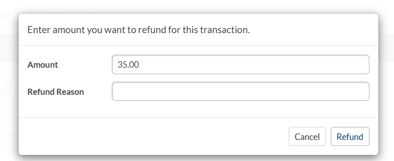 Step 3: Click on the Refund button and specify amount, then the partial or full amount and Refund reason.