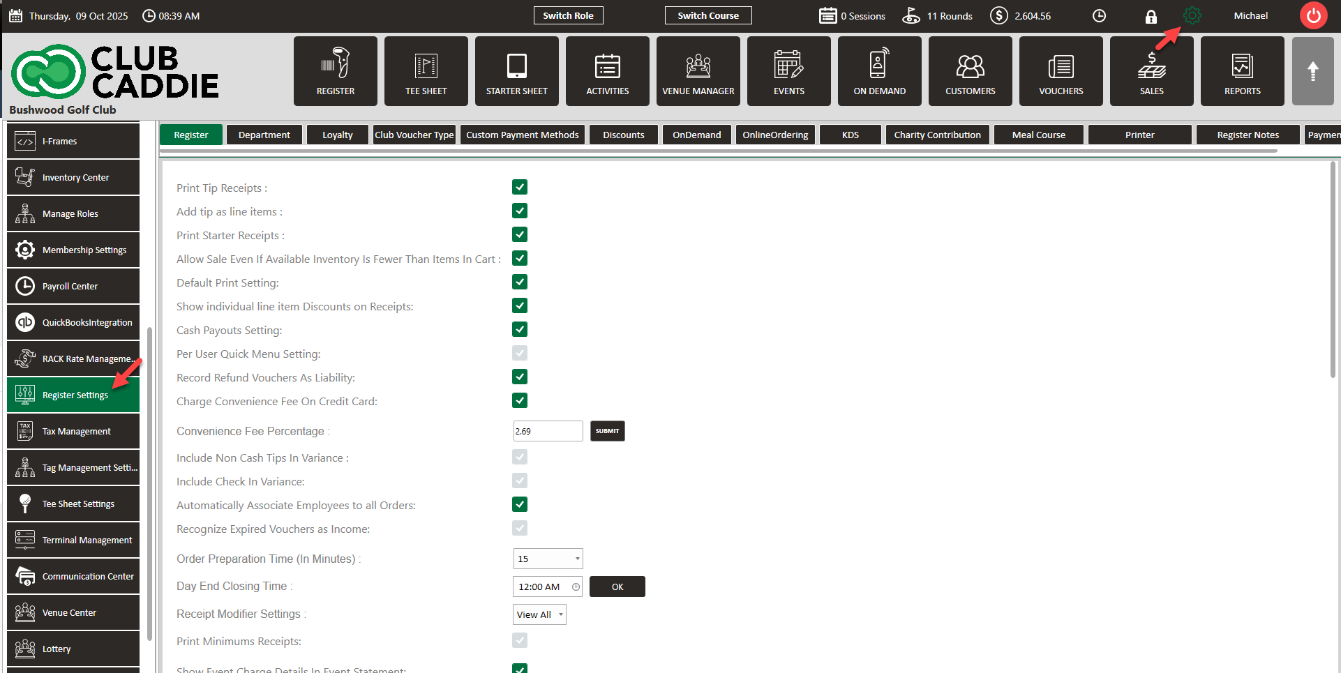Step 1: Click on the top left gear wheel image, Settings. Then, click on the Register Settings.