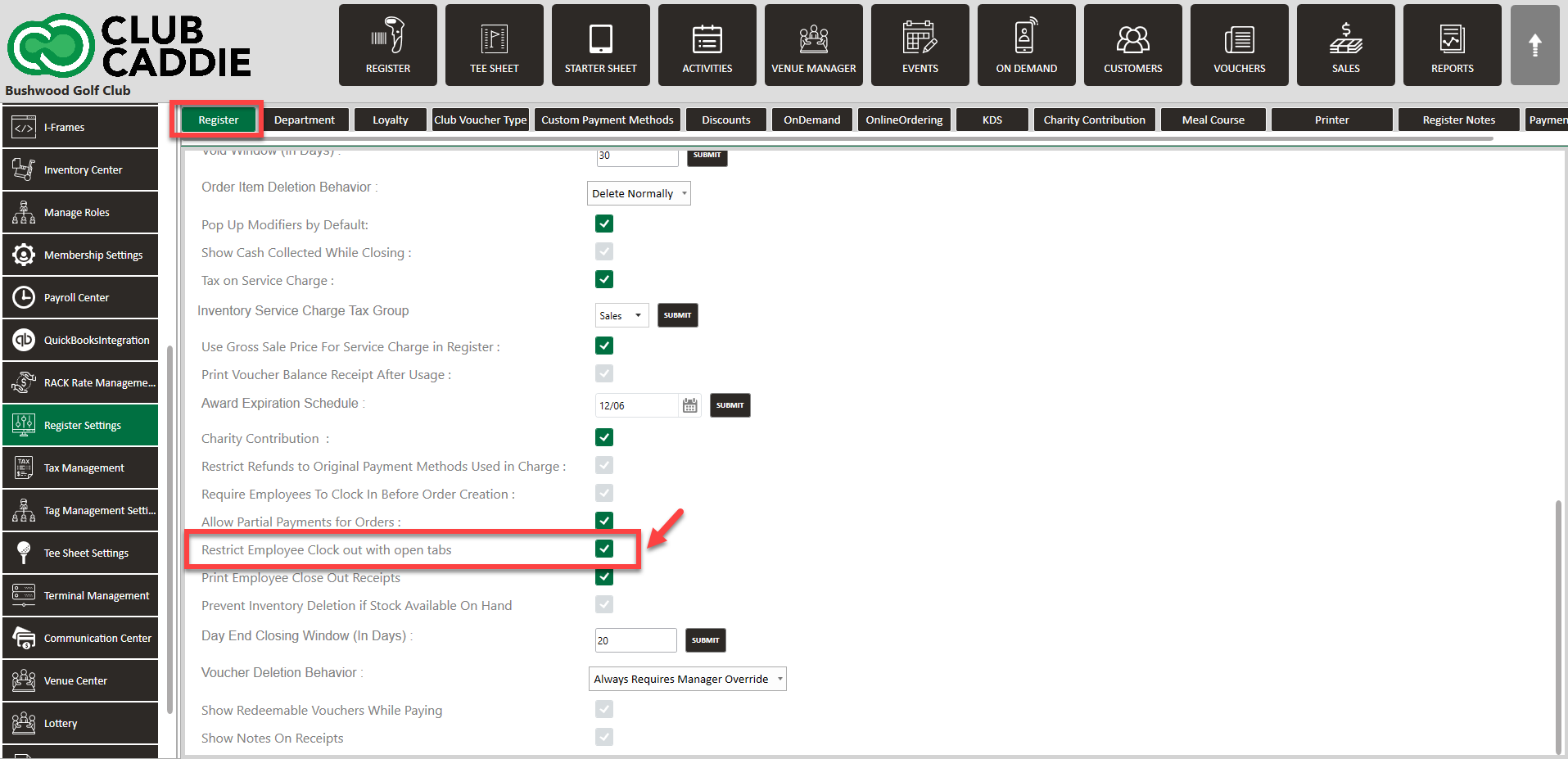 Step 2: Check mark Restrict Employee Clock Out with open Tabs.