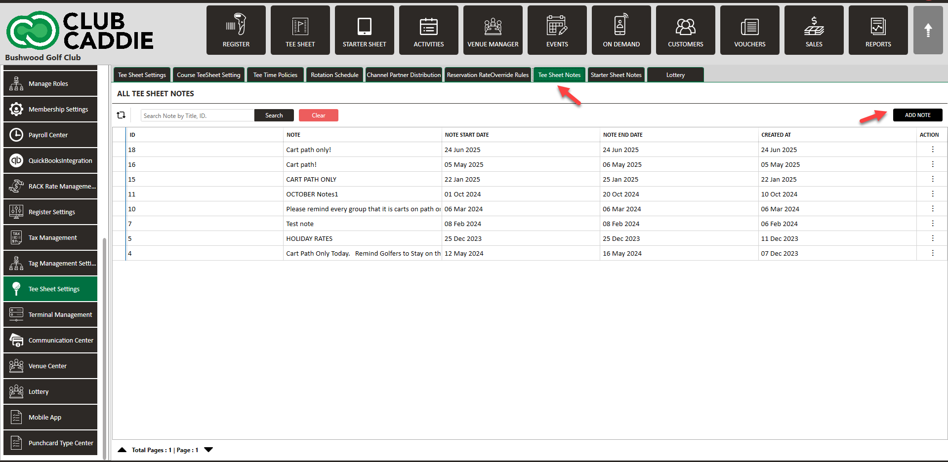 Article Contents: This article contains steps on how to add Tee Sheet Banner notes.