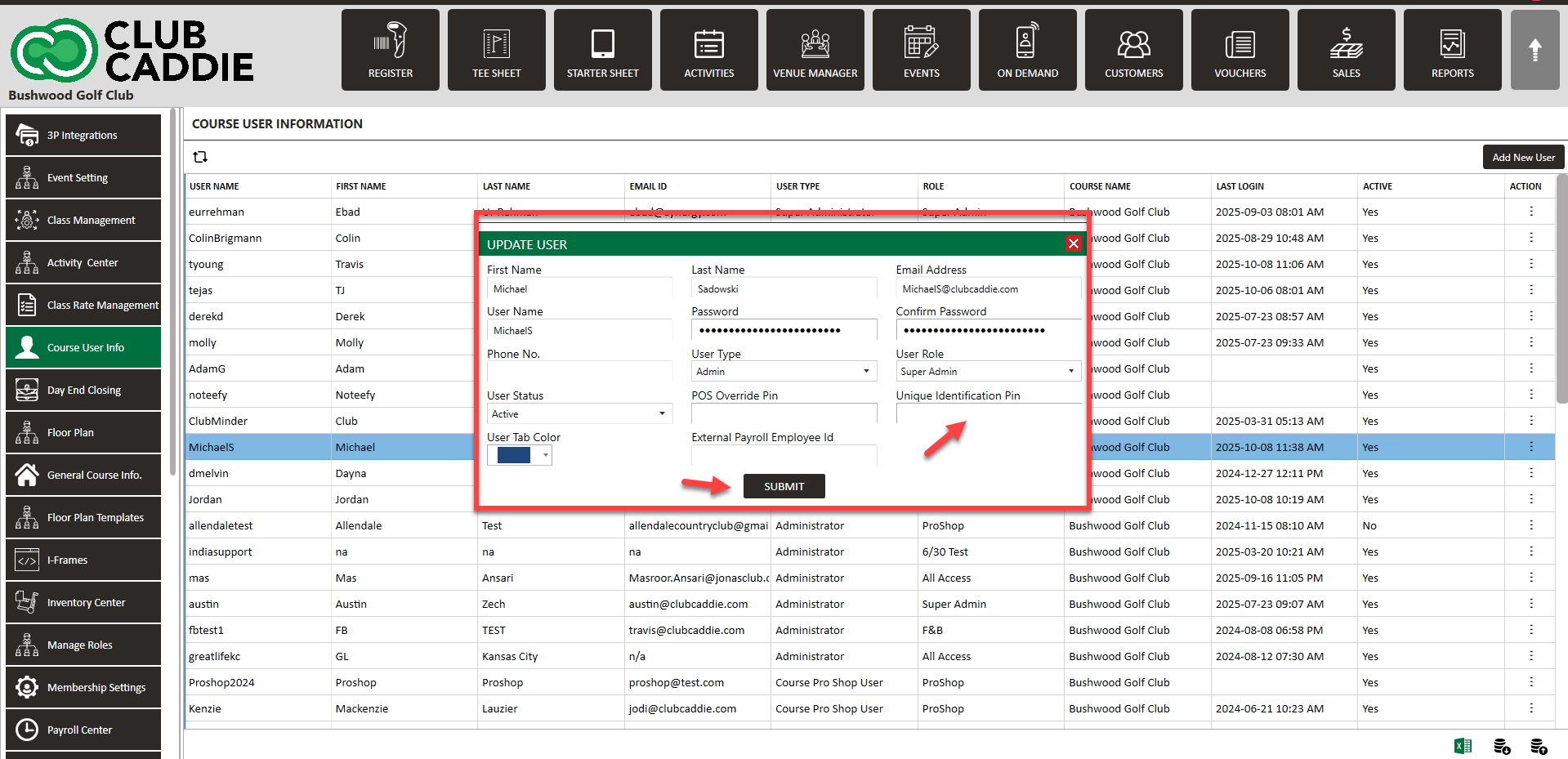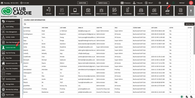 Step 3: To assign your staff with their pin number, you will need to navigate to Settings and click on Course User Info.