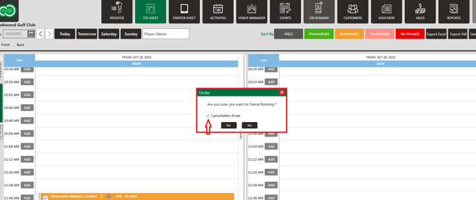 Tee Sheet : Cancel Confirmation