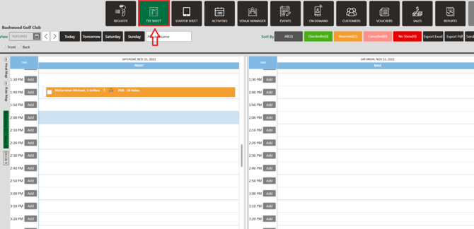 Step 1: Click on the Tee Sheet module from the top navigation bar.