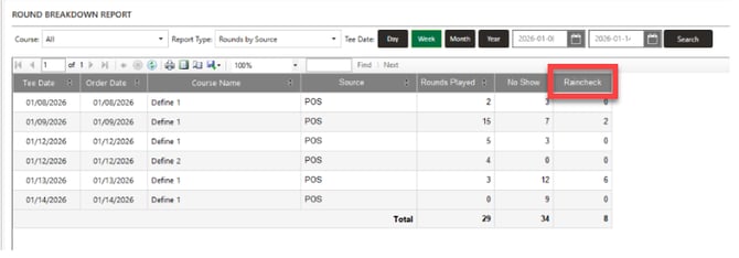 Step 7: Fields for Rain Checks will be in your Rounds Breakdown and Rounds Played Reports: