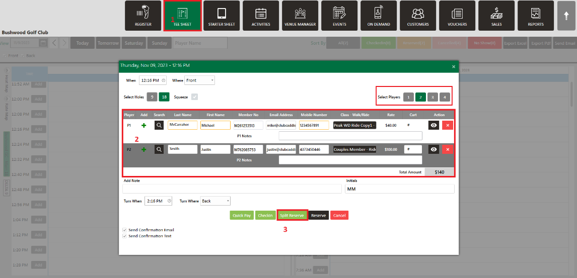Article Contents: This article contains information on how to Split Reserve Tee Time bookings.