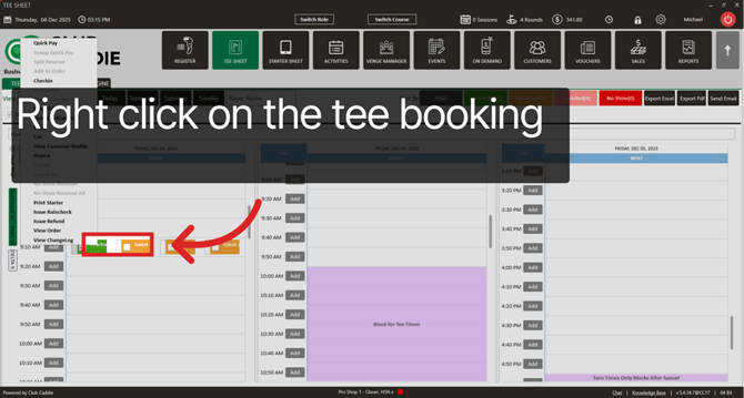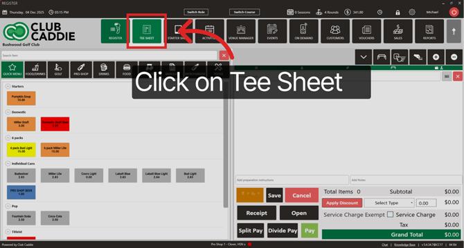 Step 1: Navigate to the Tee Sheet module in Club Caddie: