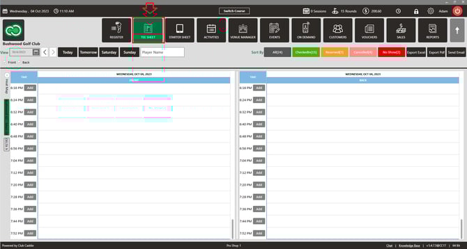 Step 1: Click on the TEE SHEET module from the top menu.