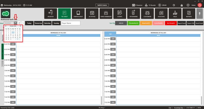 Step 2: Click on the calendar icon. Select the date from the calendar. The system will filter tee times to the selected date.