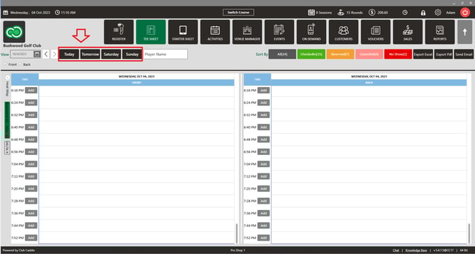 Article Contents: This article gives step-by-step instructions on how to filter a tee time by date or by day.