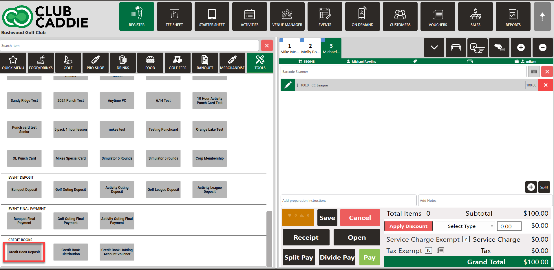 Note that if you do not see this option you will need to contact your course admin to enable the permission for "Voucher Manager" module and the subsequent "Credit Book Vouchers" permission.