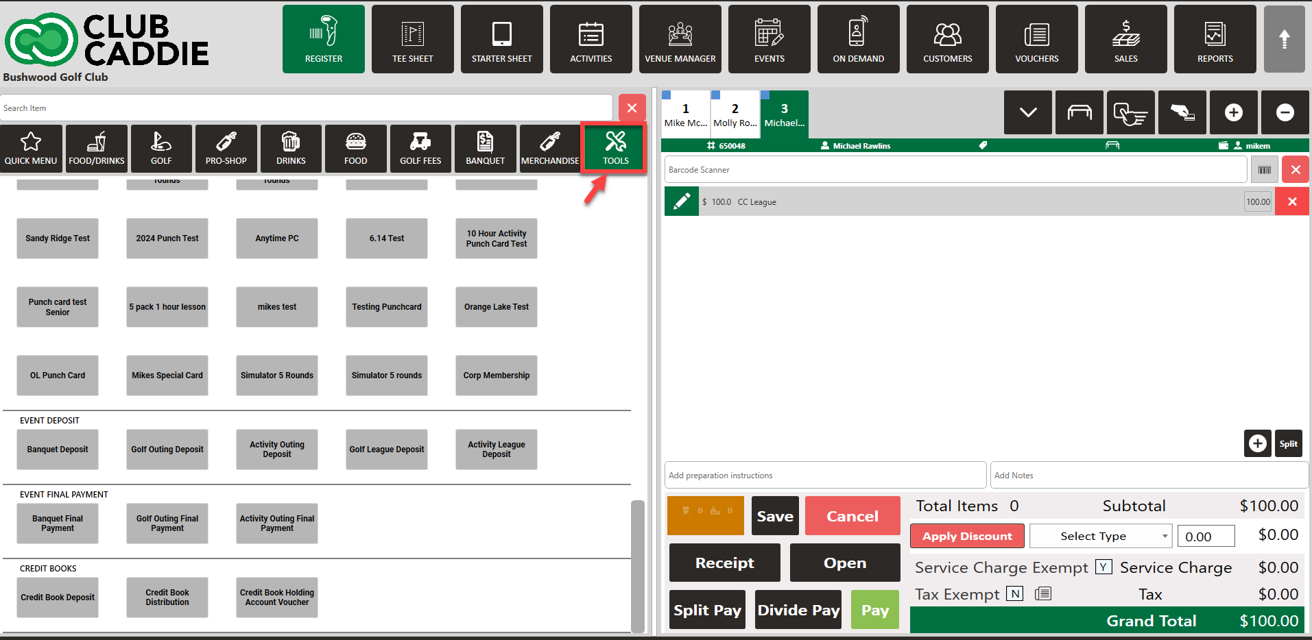 Step 1: In order to pay out the holding account balance into vouchers that can be distributed to customers we can navigate back to the "Tools" section of the register and choose the "Credit Book Distribution".