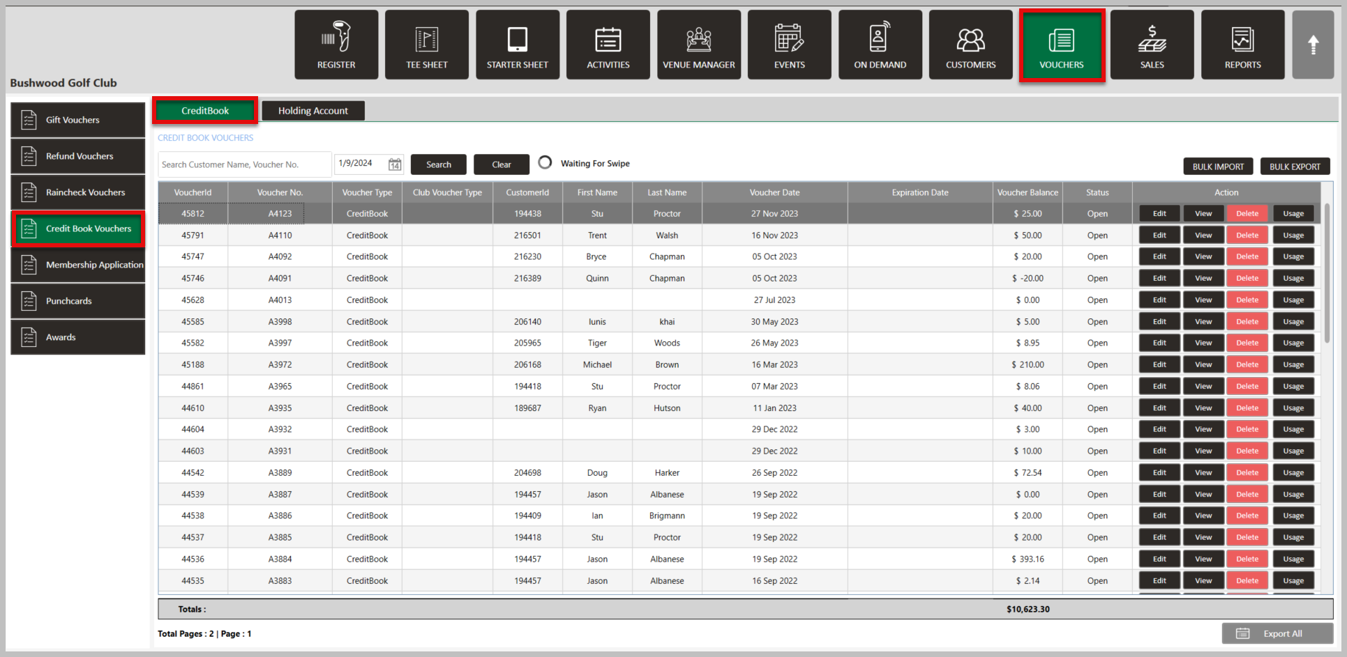 Step 1: Click on the Customers module along the top row. Then, click on Credit Book Vouchers on the left hand menu followed by the CreditBook tab.