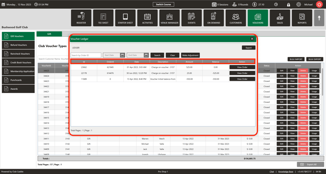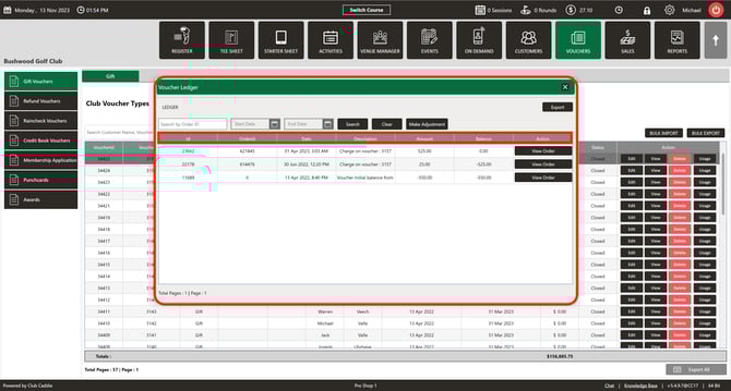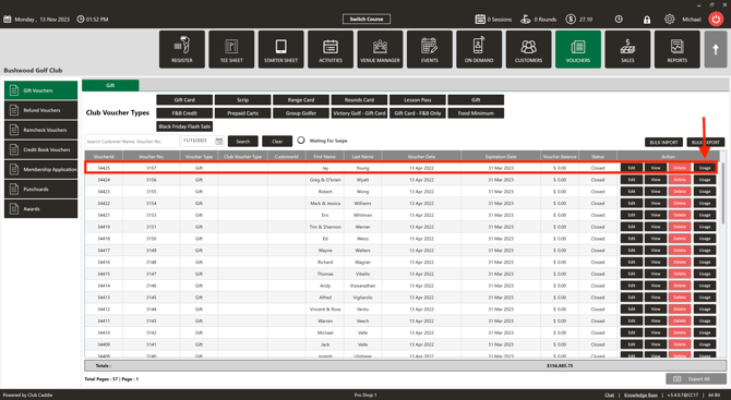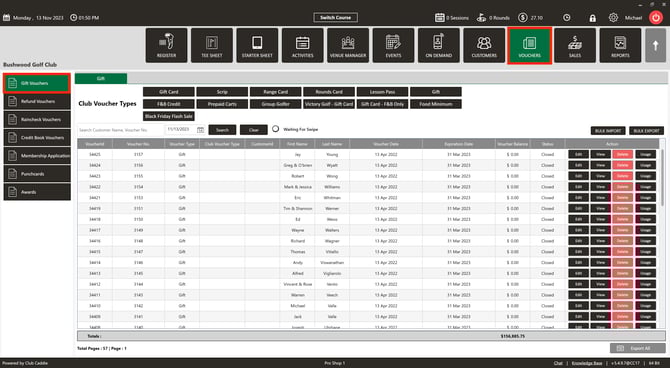 Step 1: Click on the Voucher module along the top row. Then click on a particular voucher type, i.e. Gift Voucher from the menu on the left side.